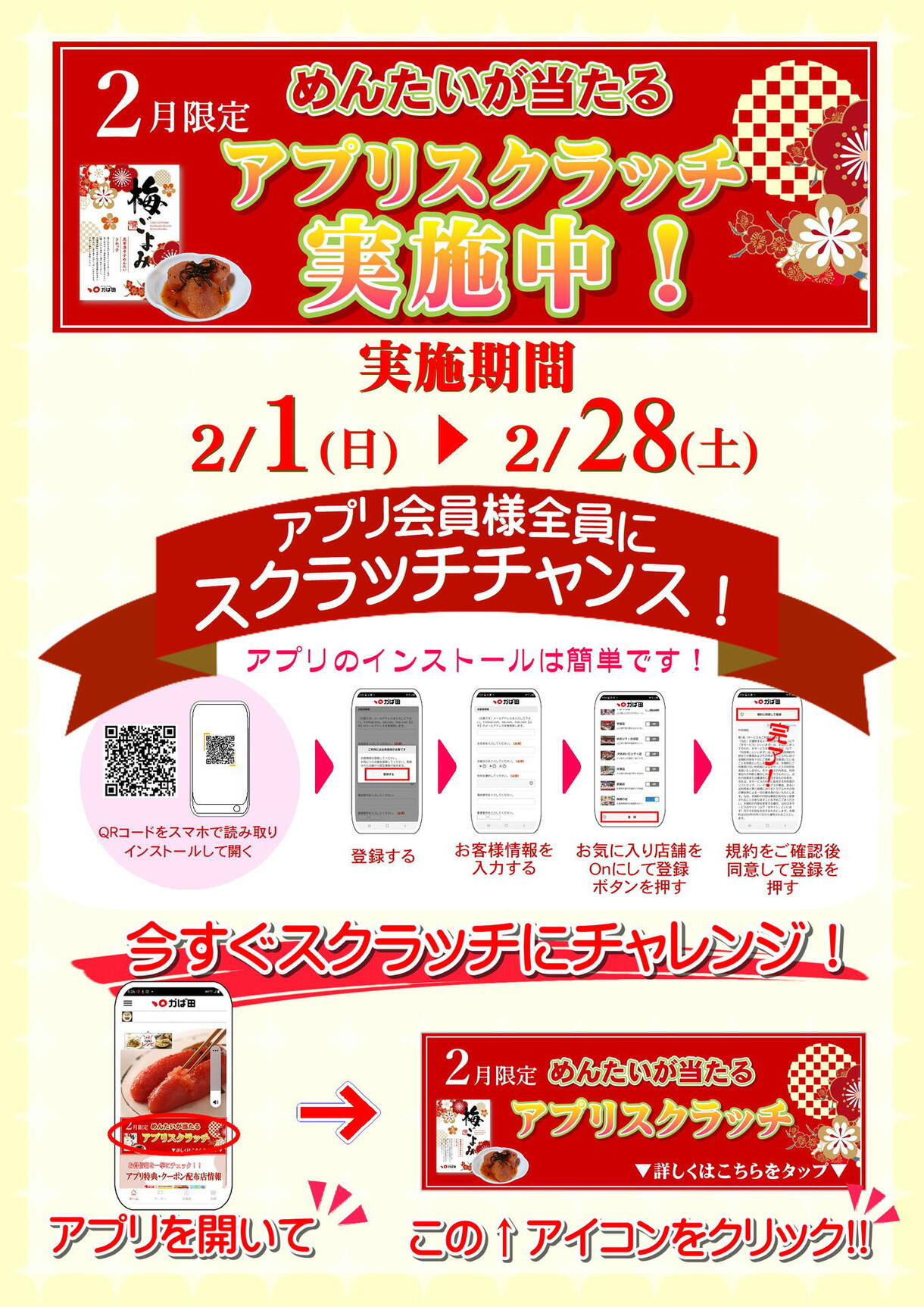 明太が当たる!かば田アプリスクラッチ!