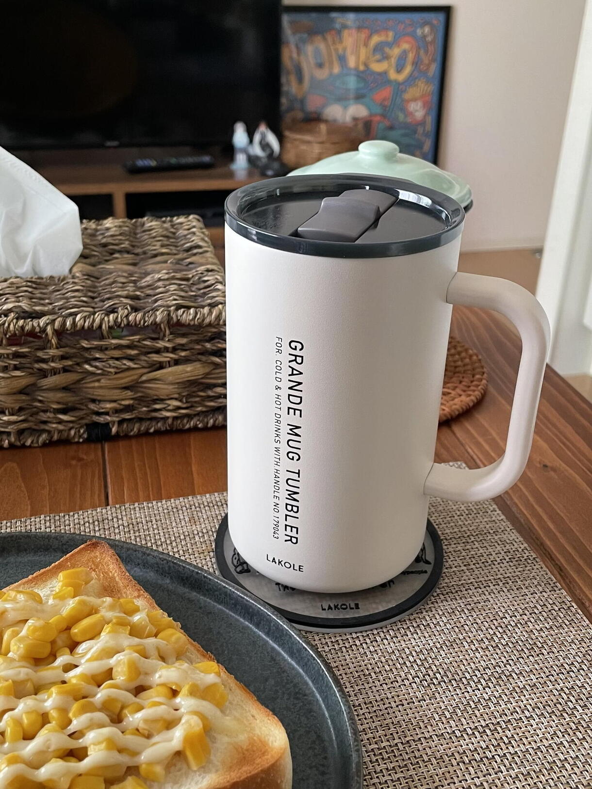 持ちやすく飲みやすいハンドル付きで、内側はセラミック加工されており、温度をキープしつつ匂いや汚れが残りにくい嬉しい仕様です!!