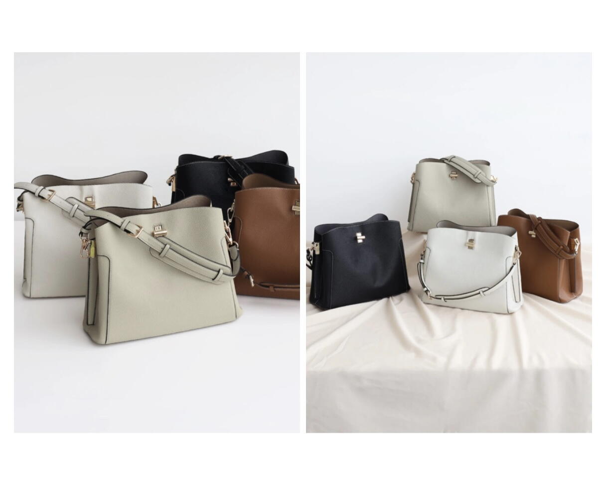 飽きのこないタイムレスなデザインの中で、フロントのゴールドスクラプや、ハンドル等のメタルパーツがアクセントになり、上品かつ女性らしい雰囲気に!