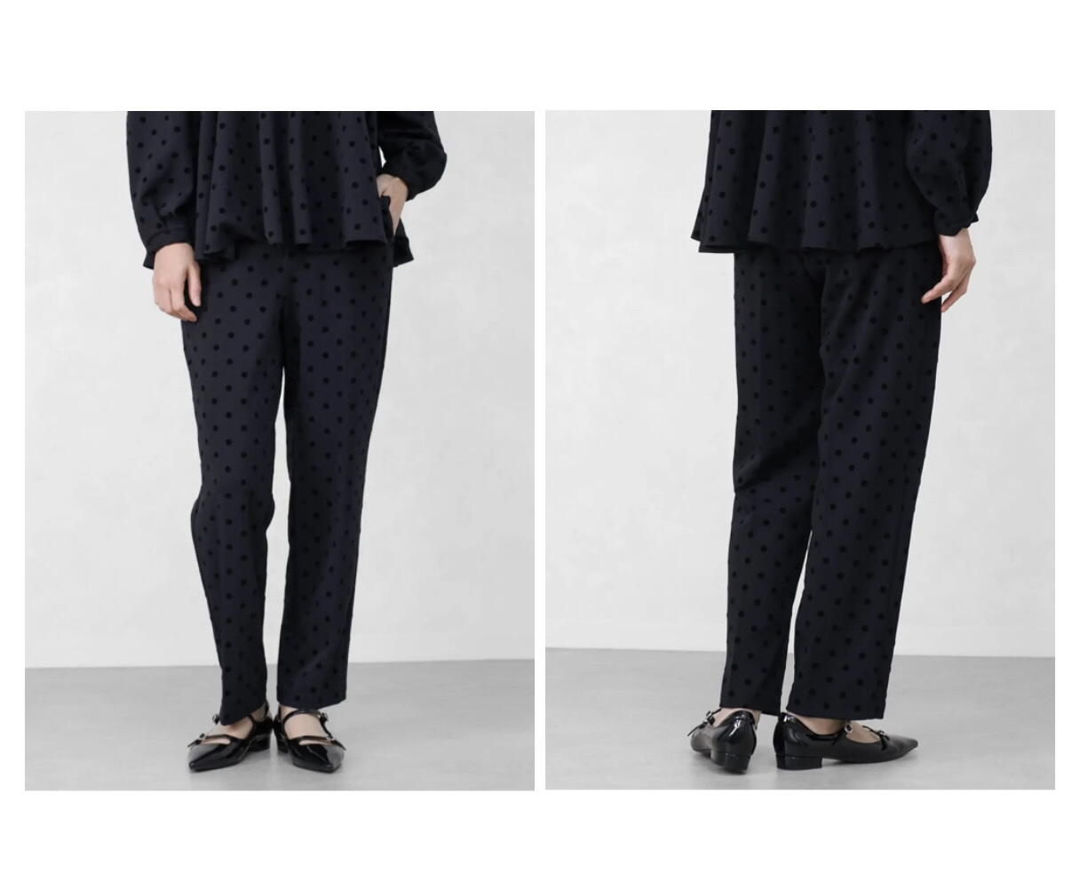 フロッキードットテーパードパンツ